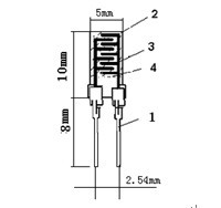 1—引出脚  2—基片  3—碳电极    4—感湿膜